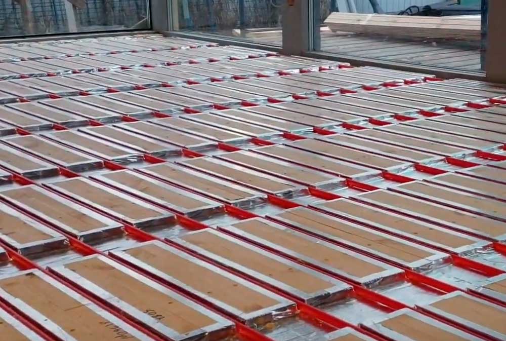 а) Фрезерованная доска одновременно выполняет функцию основания пола и панелью для размещения тепловых труб.